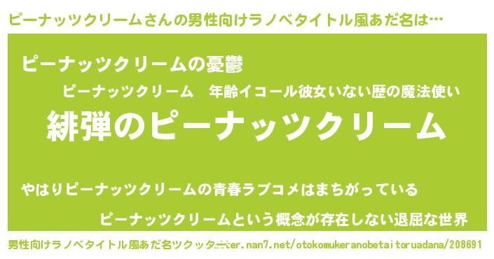| 胡散臭い通販商品みたいなあだ名 | 『必ず成功する水晶球…その名も「ピーナッツクリーム」』 |