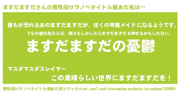 | 胡散臭い通販商品みたいなあだ名 | 『必ず成功するブレスレット…その名も「ますだますだ」』 |
