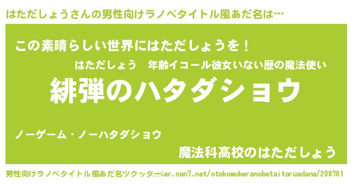 | 意味不明あだ名 | 『住所不定無職はただしょう(12歳)』 |