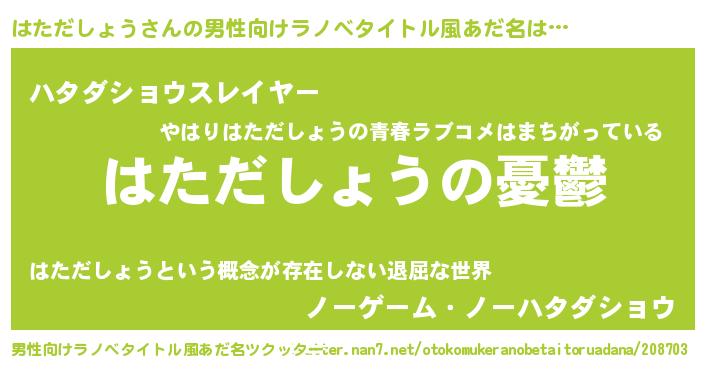 | 女子向けラノベタイトル風あだ名 | 『はただしょう姫と円卓の騎士』 |
