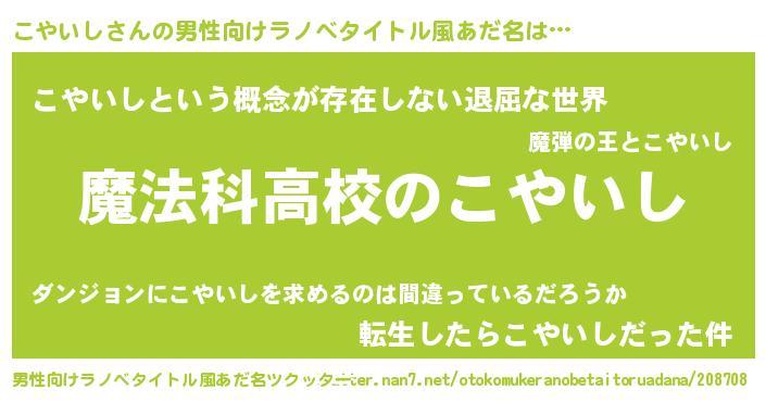| 女子向けラノベタイトル風あだ名 | 『こやいしなんてお断りですっ。』 |