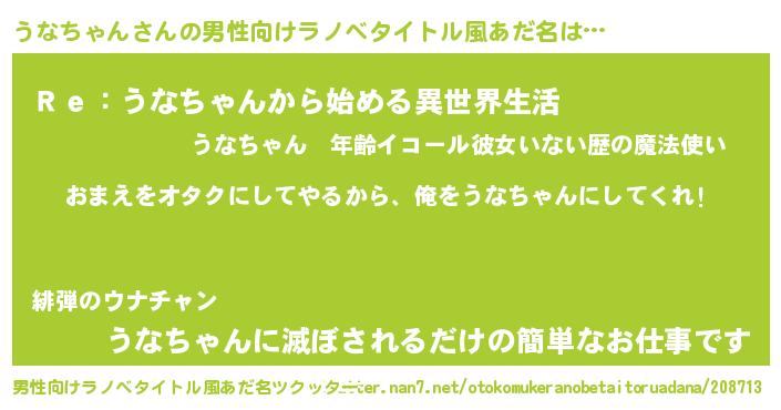 | 女子向けラノベタイトル風あだ名 | 『うなちゃん恋絵巻』 |