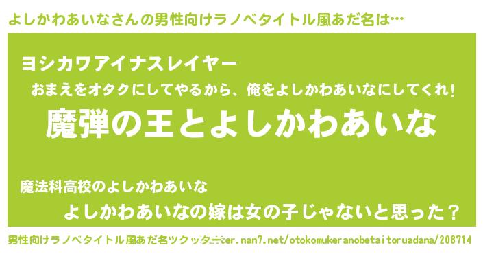| ヘコむあだ名 | 『よしを』『よしかわあいな(遠い目)』 |