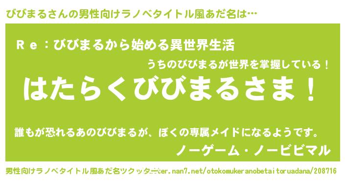 | ヒーロー風カッコイイあだ名 | 『超時空戦士ビビマル』『ネオビビマル』 |