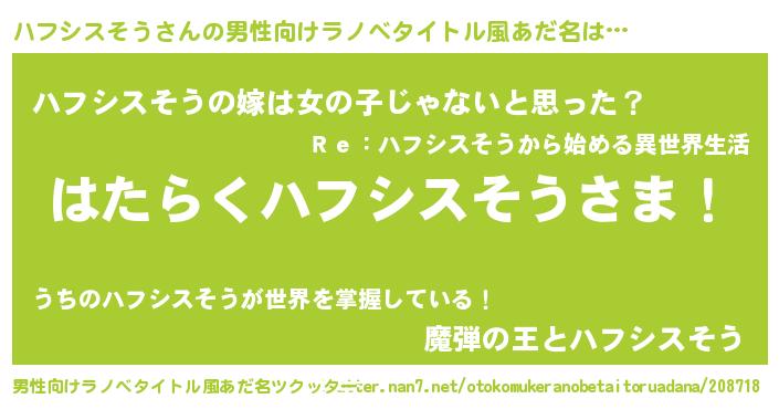 | 女子向けラノベタイトル風あだ名 | 『首の姫と首なしハフシスそう』 |