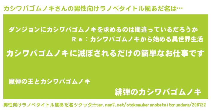 | ヘコむあだ名 | 『カシっ子』『カシワバゴムノキ(笑)』 |