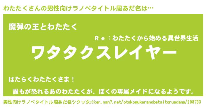 | ヒーロー風カッコイイあだ名 | 『仮面ワタダー』『ネオワタタク』 |