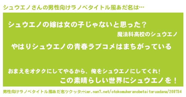 | 女子向けラノベタイトル風あだ名 | 『シュウエノの雑貨屋さん』 |