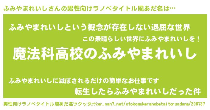 | 意味不明あだ名 | 『自称ふみやまれいし』 |