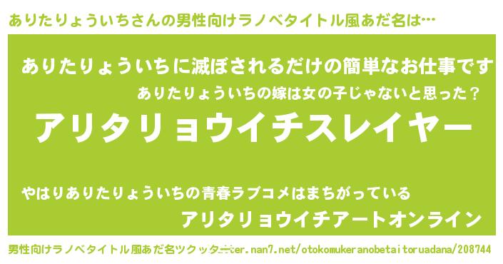 | 胡散臭い通販商品みたいなあだ名 | 『必ず成功するブレスレット…その名も「ありたりょういち」』 |