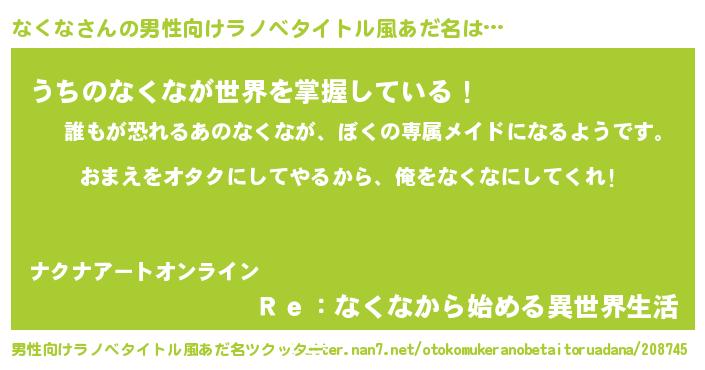 | 女子向けラノベタイトル風あだ名 | 『なくな恋絵巻』『なくな姫と円卓の騎士』 |