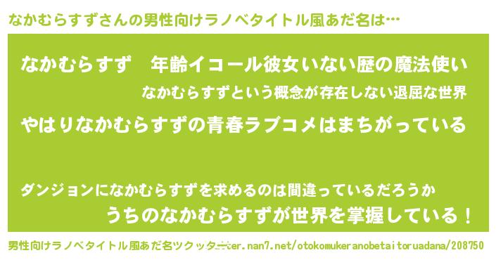 | 女子向けラノベタイトル風あだ名 | 『なかむらすずの雑貨屋さん』 |