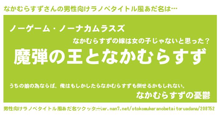| 女子向けラノベタイトル風あだ名 | 『乙女ゲームの破滅フラグしかない悪役なかむらすずに転生してしまった…』 |
