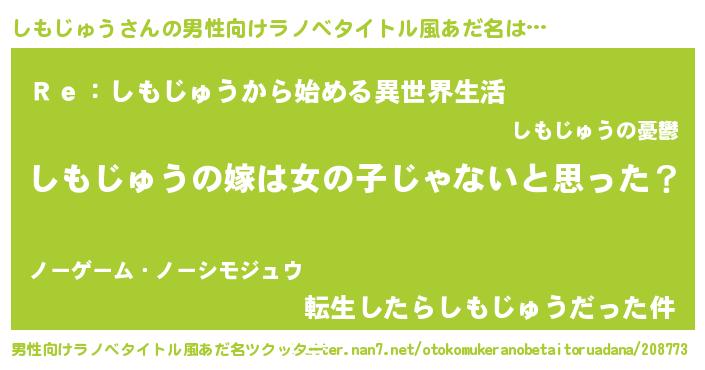しもじゅうさんの男性向けラノベタイトル風あだ名をツクッター!