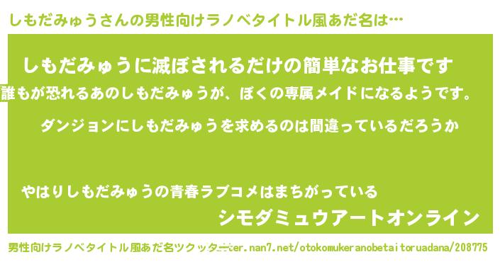 | 意味不明あだ名 | 『とにかく怪しいしもだみゅう』 |
