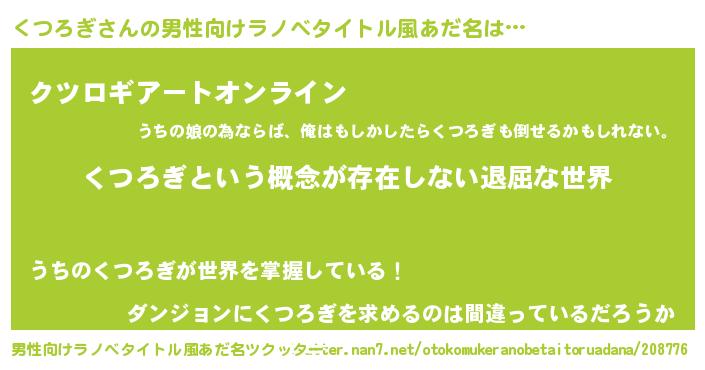 | ヒーロー風カッコイイあだ名 | 『ネオクツロギ』『スーパークツロギ』 |