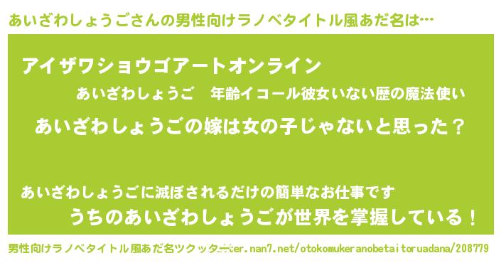 | 欧米人風あだ名 | 『ウサインあいざわしょうご』 |