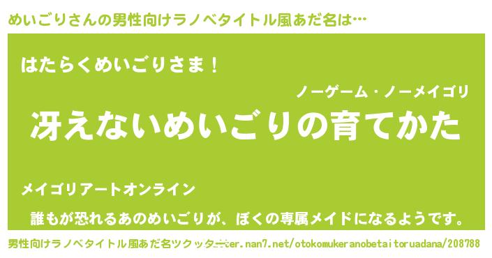 | ヘコむあだ名 | 『めいごり(笑)』『めいにゅー』 |