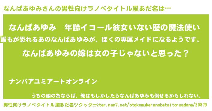 | 女子向けラノベタイトル風あだ名 | 『なんばあゆみの卵を拾いまして』 |