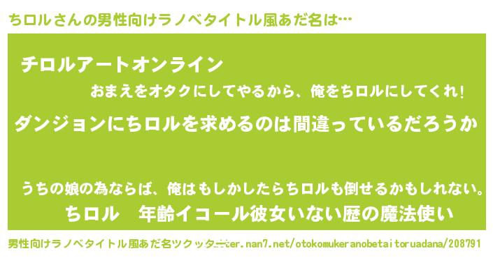 | 意味不明あだ名 | 『とにかく怪しいちロル』 |