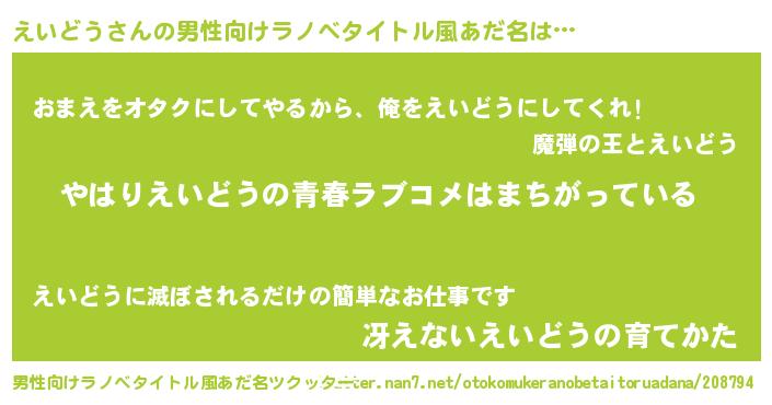 | 女子向けラノベタイトル風あだ名 | 『えいどうの雑貨屋さん』 |