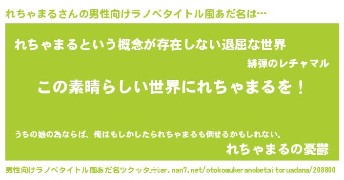 | 意味不明あだ名 | 『住所不定無職れちゃまる(8歳)』 |