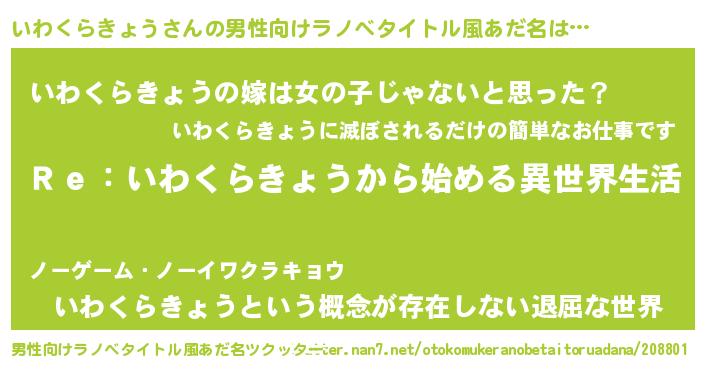 | 女子向けラノベタイトル風あだ名 | 『闇のいわくらきょう』 |
