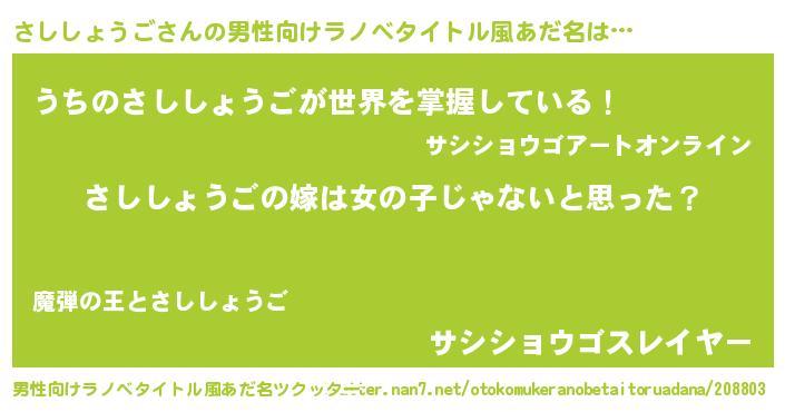 | 意味不明あだ名 | 『とにかく怪しいさししょうご』 |