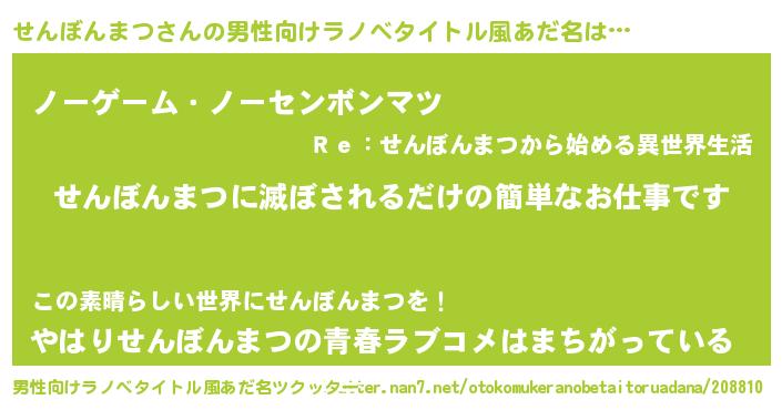 | ヒーロー風カッコイイあだ名 | 『慈愛の使者せんぼんまつ』 |