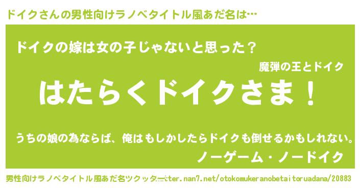 | 胡散臭い通販商品みたいなあだ名 | 『信頼と実績のサプリメント…その名も「ドイク」』 |