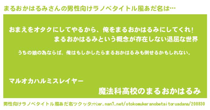 | 女子向けラノベタイトル風あだ名 | 『まるおかはるみの婚約者』 |