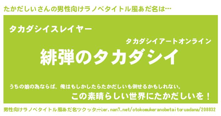 | 女子向けラノベタイトル風あだ名 | 『シンデレラたかだしい家の靴箱館』 |