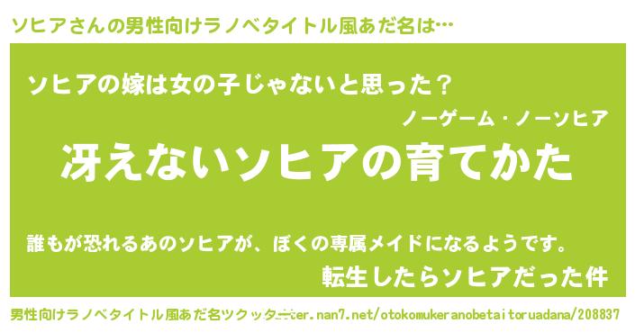 | 意味不明あだ名 | 『とにかく怪しいソヒア』 |