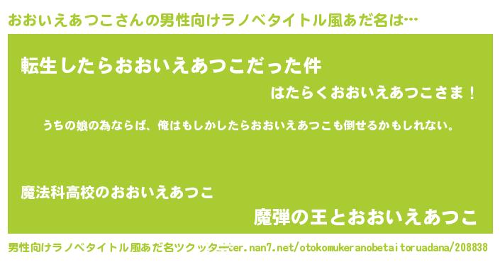 | 女子向けラノベタイトル風あだ名 | 『おおいえあつこの婚約者』 |