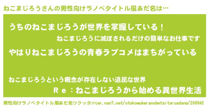 | 女子向けラノベタイトル風あだ名 | 『ねこまじろうの雑貨屋さん』 |