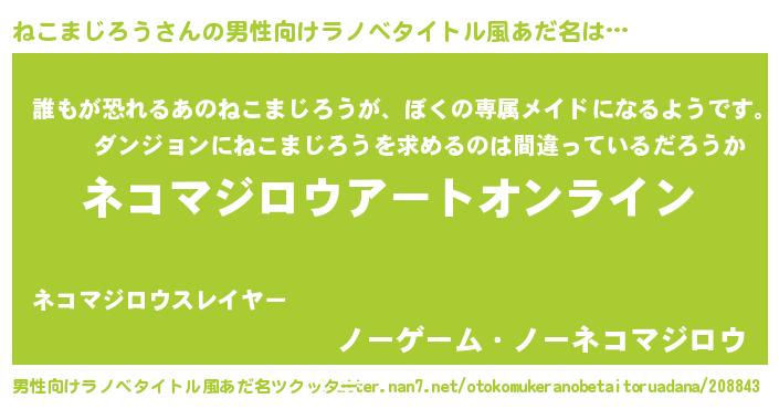 | 女子向けラノベタイトル風あだ名 | 『ねこまじろう姫と円卓の騎士』 |