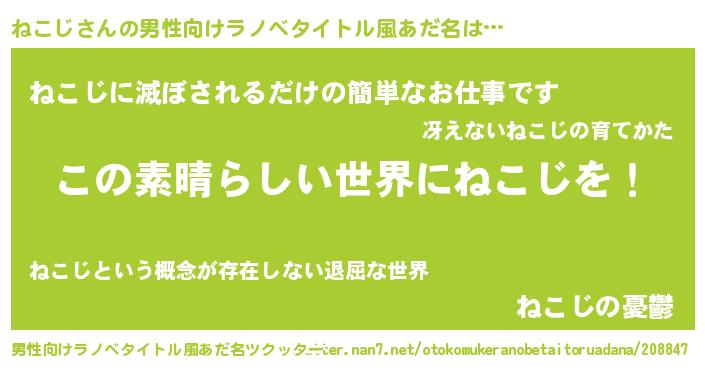 | ヘコむあだ名 | 『ねこにー』『ねこじ(小並感)』 |