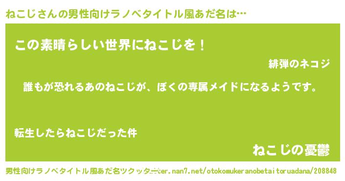 | 女子向けラノベタイトル風あだ名 | 『異世界でカフェねこじを開店しました。』 |