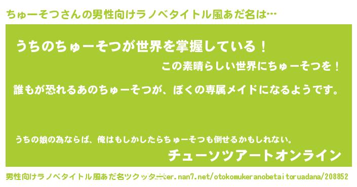 | 意味不明あだ名 | 『永久保存ちゅーそつ』『自称ちゅーそつ』 |