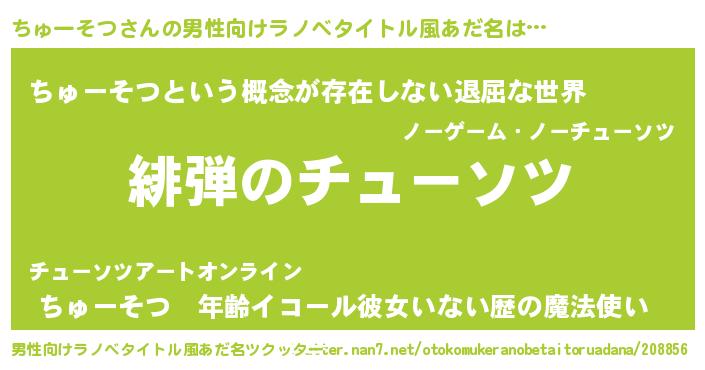 | 胡散臭い通販商品みたいなあだ名 | 『絶対に幸福をもたらす水素水…その名も「ちゅーそつ」』 |