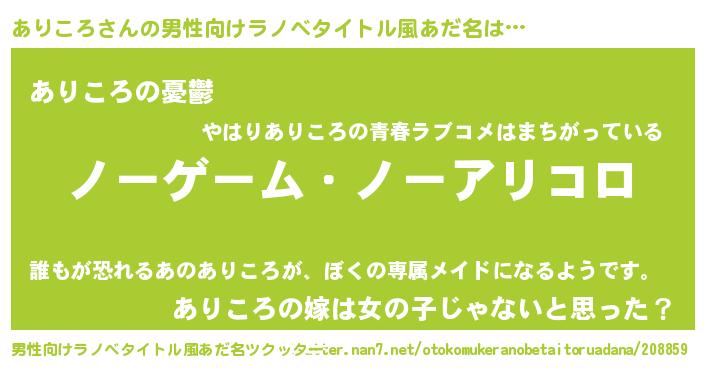 | 女子向けラノベタイトル風あだ名 | 『死神ありころの再婚』 |
