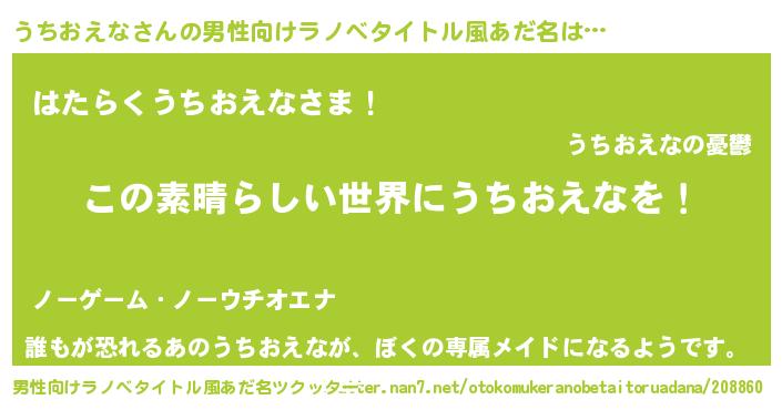 | 女子向けラノベタイトル風あだ名 | 『乙女ゲームの破滅フラグしかない悪役うちおえなに転生してしまった…』 |