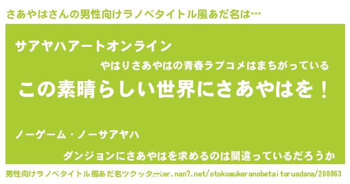 | 意味不明あだ名 | 『住所不定無職さあやは(74歳)』 |