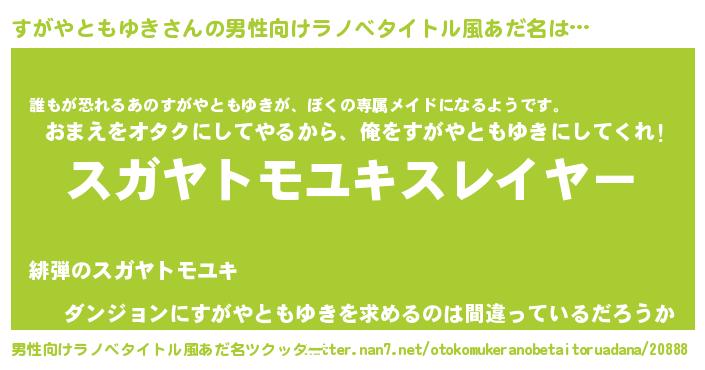 | 肩書あだ名 | 『すがやともゆき大将』 |