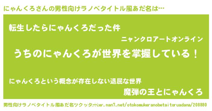 | 胡散臭い通販商品みたいなあだ名 | 『あなたにだけ特別に提供する100年もののヴィンテージワイン…その名も「にゃんくろ」』 |