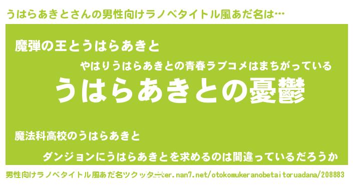 | 胡散臭い通販商品みたいなあだ名 | 『モテモテ間違いなし霊験あらたかなお札…その名も「うはらあきと」』 |
