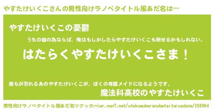 | 胡散臭い通販商品みたいなあだ名 | 『モテモテ間違いなしブレスレット…その名も「やすたけいくこ」』 |