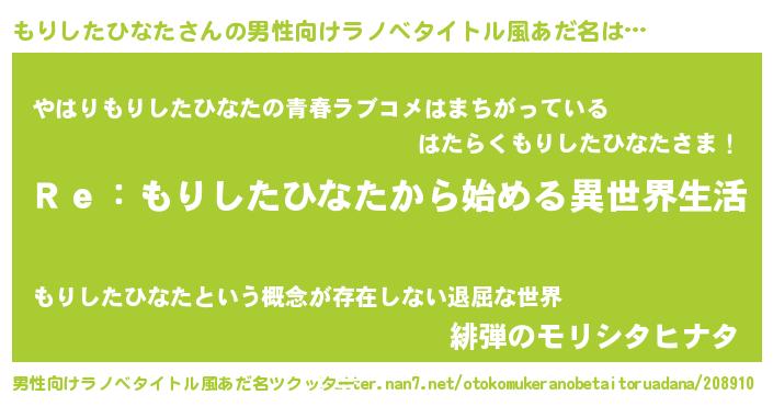 | 胡散臭い通販商品みたいなあだ名 | 『テレビで話題の高麗人参…その名も「もりしたひなた」』 |