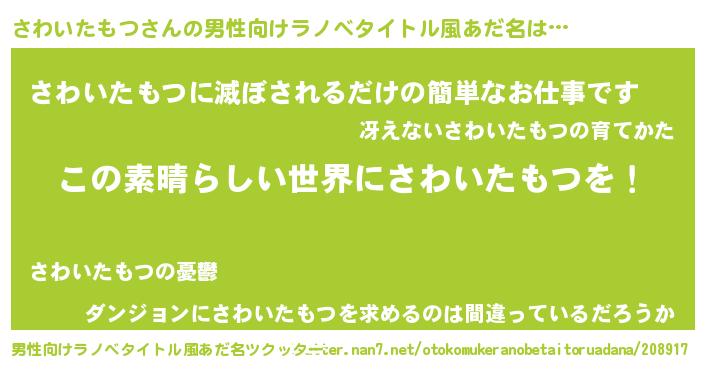 | 意味不明あだ名 | 『住所不定無職さわいたもつ(53歳)』 |