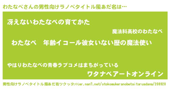 | 胡散臭い通販商品みたいなあだ名 | 『億万長者になれるブレスレット…その名も「わたなベ」』 |